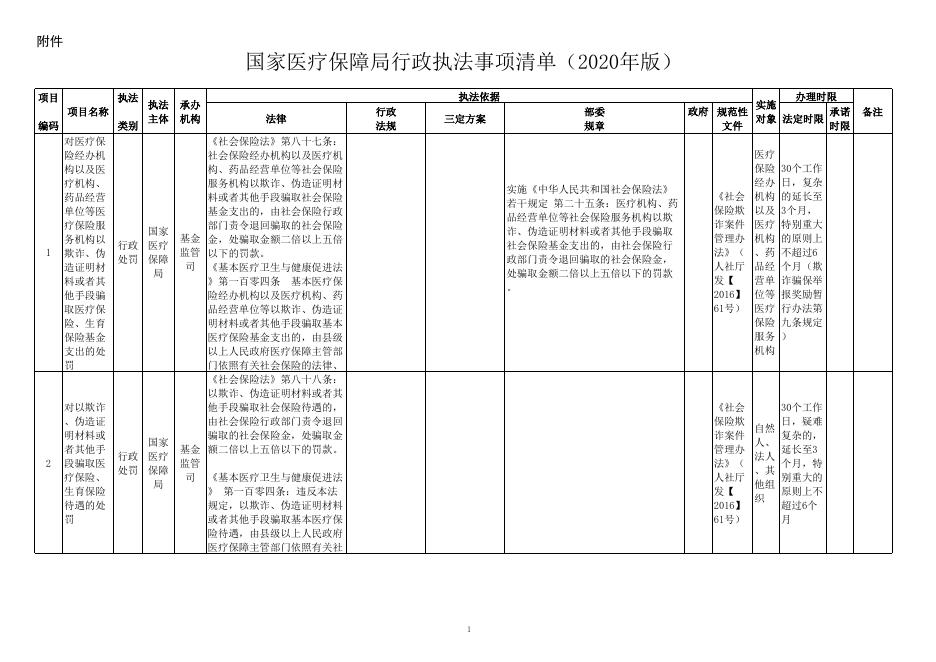国家医疗保障局行政执法事项清单(2020年版).xlsx