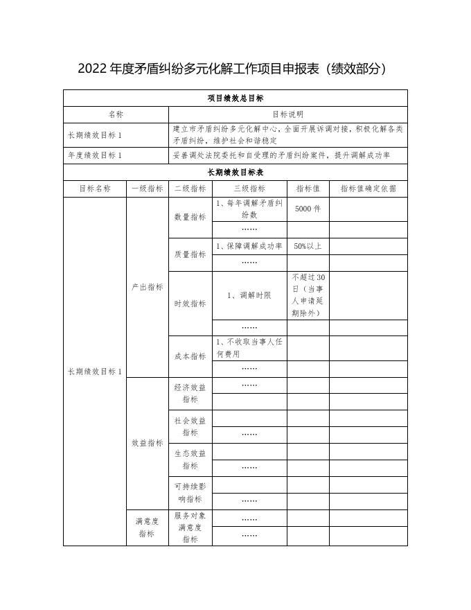 项目申报表(绩效部分)——矛盾纠纷多元化解工.docx