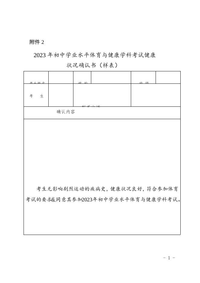 附件2:2023年初中学业水平体育与健康学科考试健康状况确认书(样表).docx