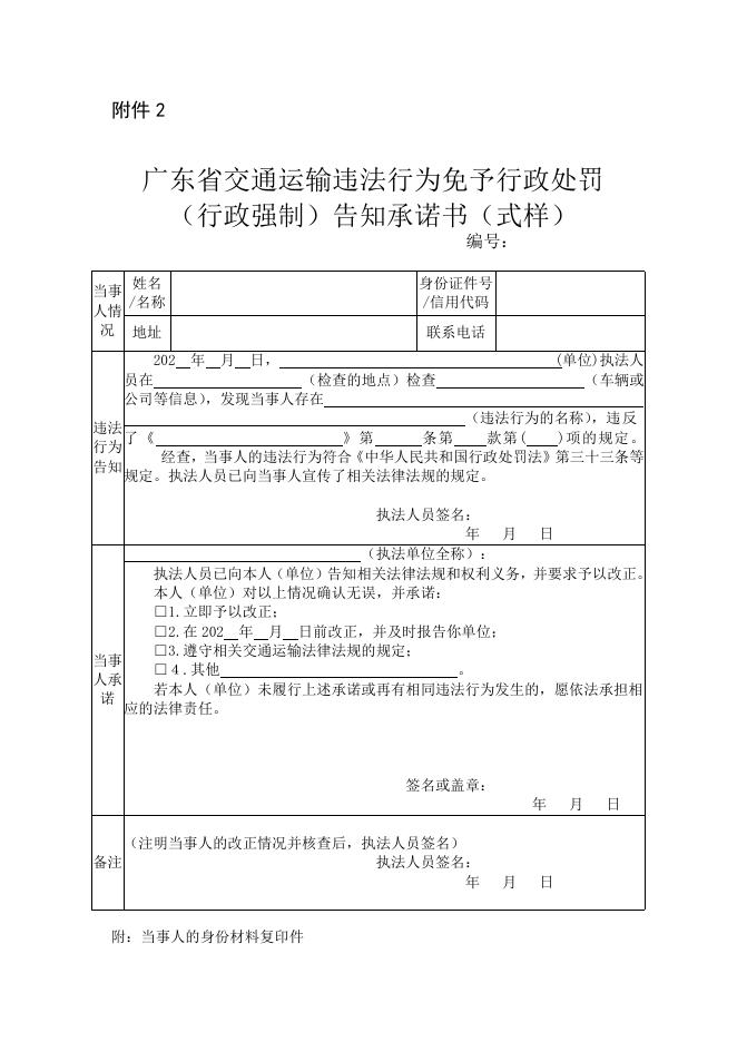 附件2:广东省交通运输违法行为免予行政处罚(行政强制)告知承诺书式样.doc