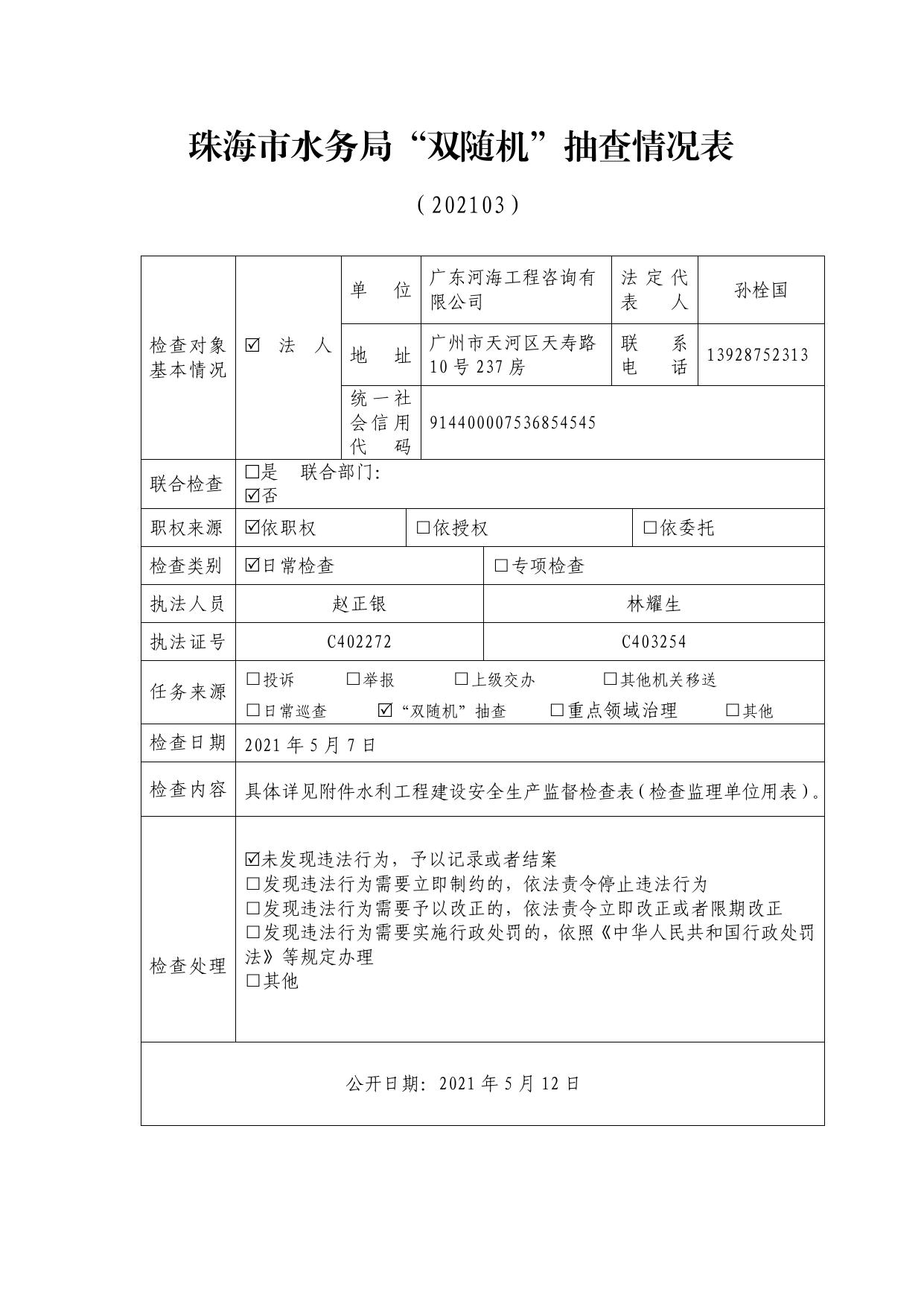 202103珠海市水务局“双随机”抽查情况表(广东河海工程咨询有限公司).pdf