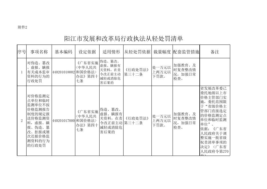附件2:阳江市发展和改革局行政执法从轻处罚清单.xls