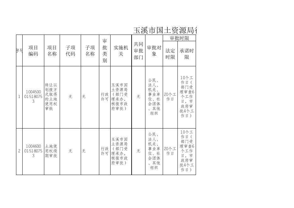 附件一_玉溪市国土资源局行政审批项目目录.xls