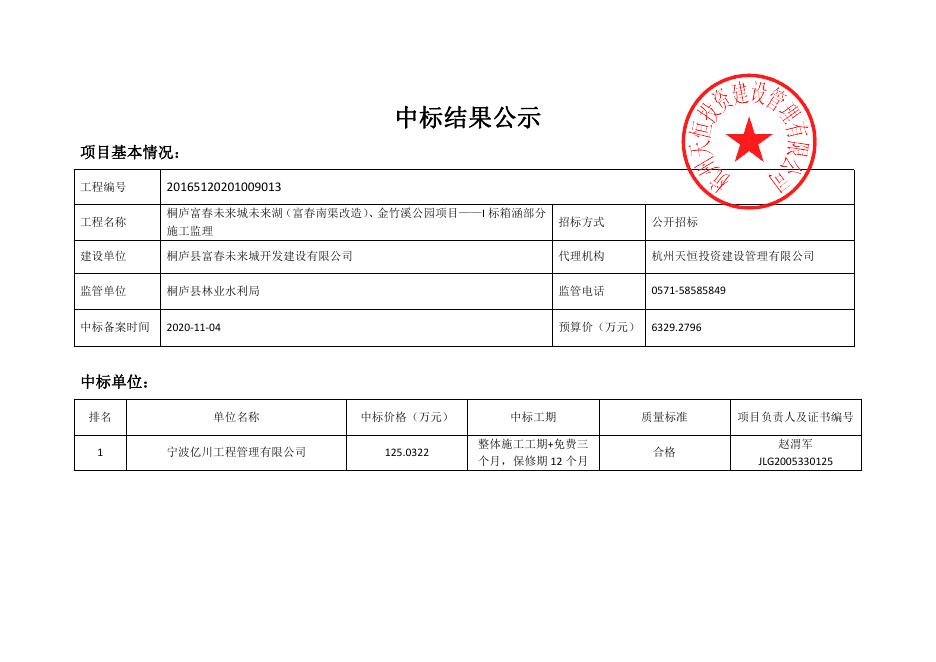 桐庐富春未来城未来湖(富春南渠改造)、金竹溪公园项目—I标箱涵部分施工监理中标公告.pdf