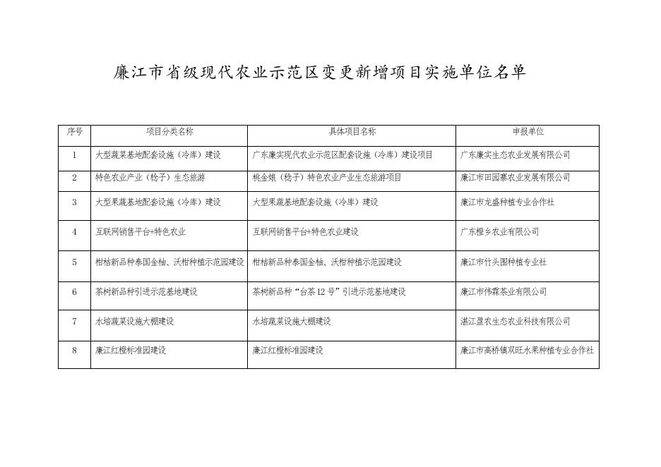 附件:廉江市省级现代农业示范区变更新增项目实施单位名单.docx