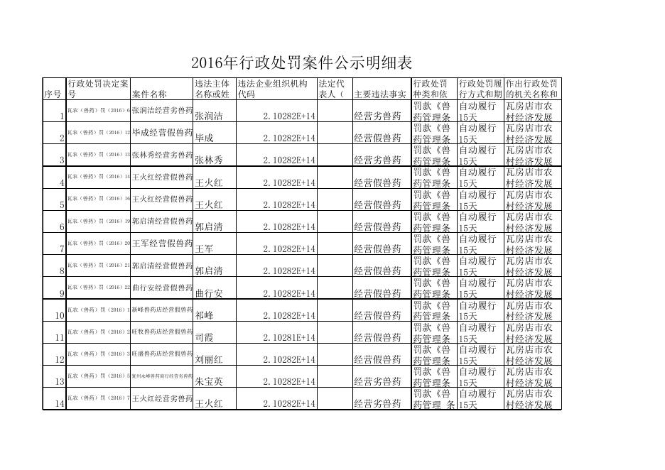 2016年行政处罚案件公示明细表(点击下载).xls