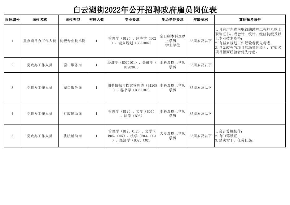 白云湖街2022年公开招聘政府雇员岗位表.xlsx