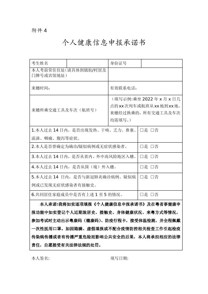 附件4:个人健康信息申报承诺书.doc
