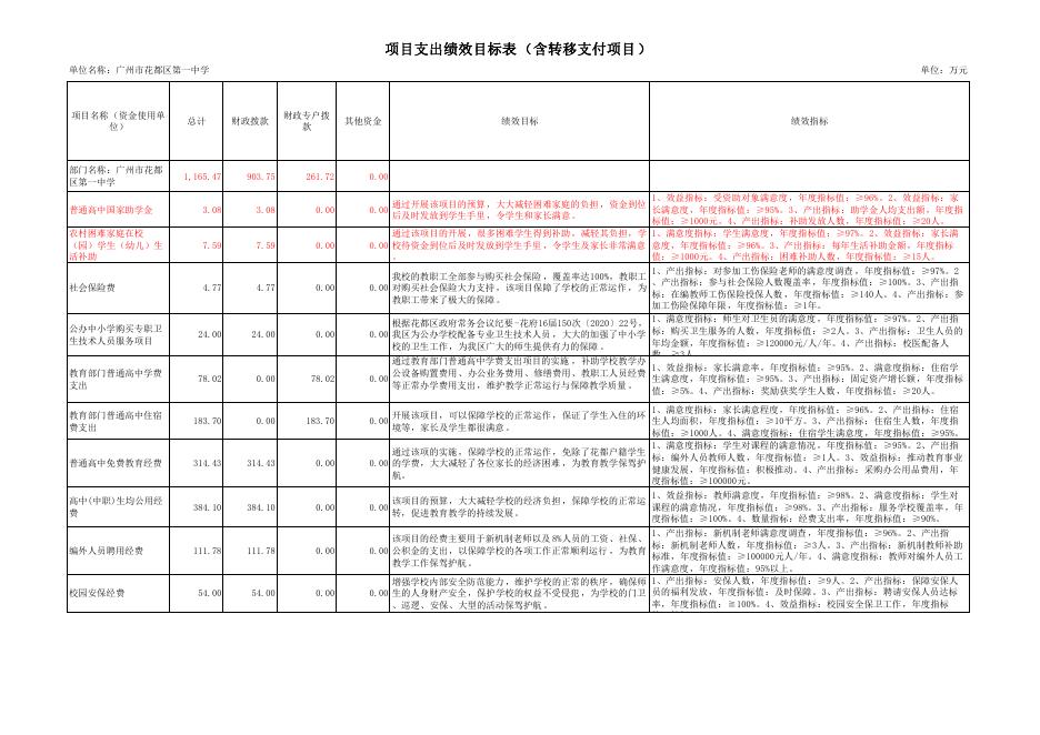 广州市花都区第一中学2023年项目支出绩效目标表(含转移支付项目).pdf