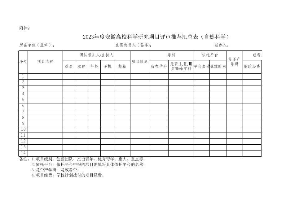 附件8.安徽高校科学研究项目评审推荐汇总表(自然科学类).xls