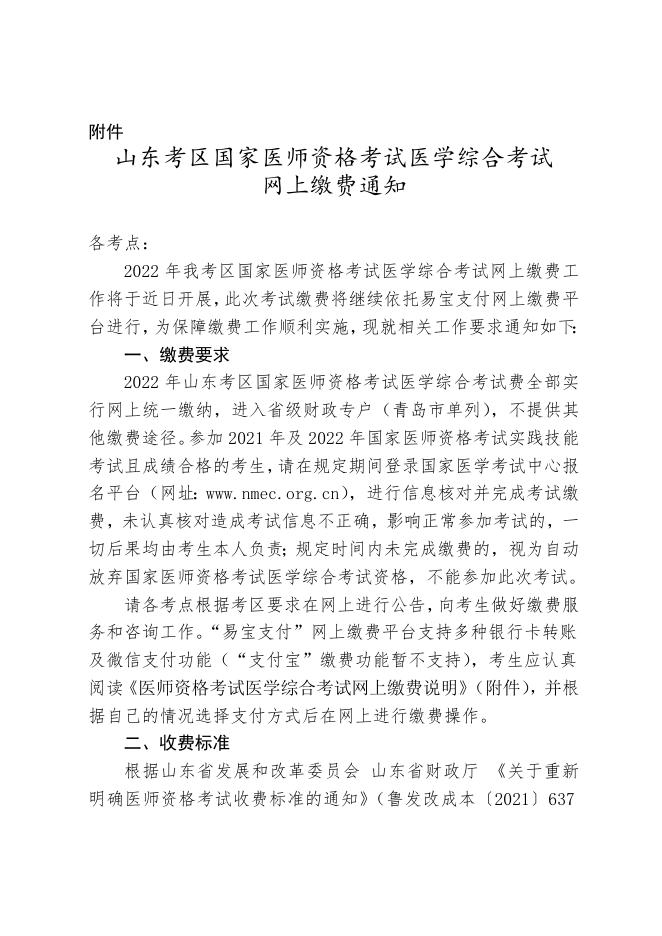 附件:山东考区国家医师资格考试医学综合考试网上缴费通知.doc