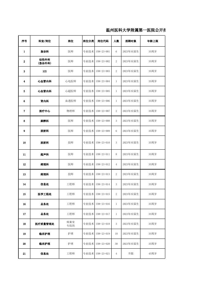 附件:温州医科大学附属第一医院招聘计划表(2023年第一批).xlsx