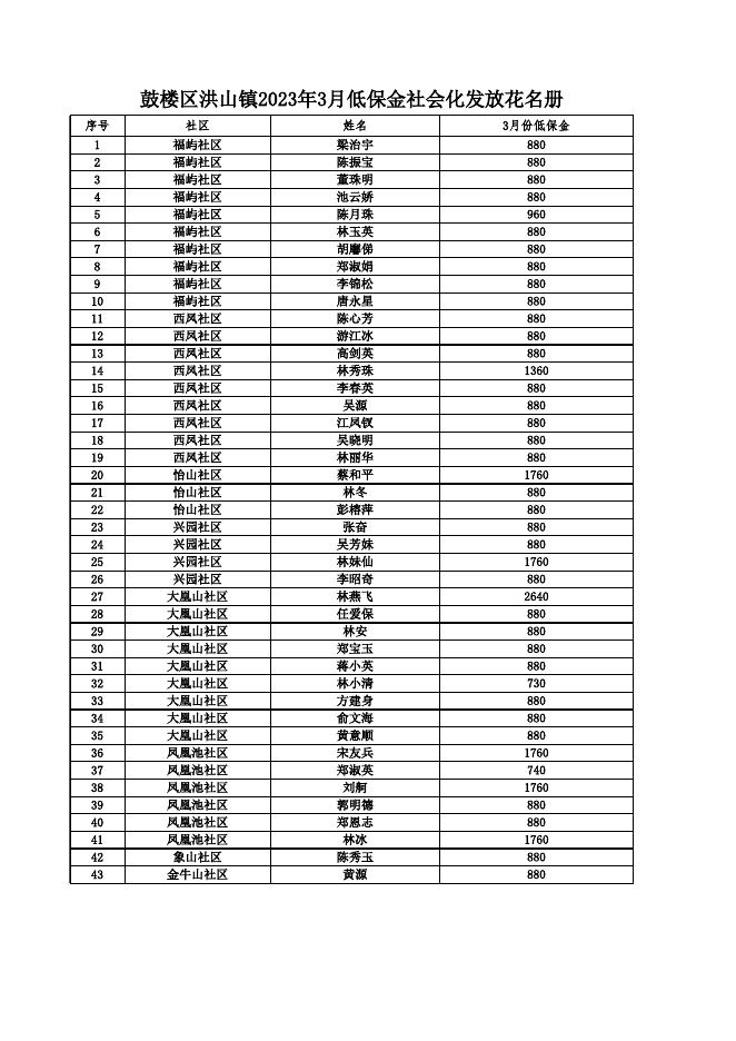 鼓楼区洪山镇2023年3月低保金社会化发放花名册.xls