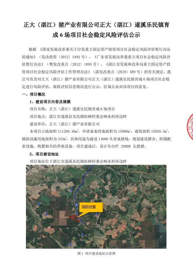 正大(湛江)遂溪乐民镇育成6场项目社会稳定风险评估公示.pdf