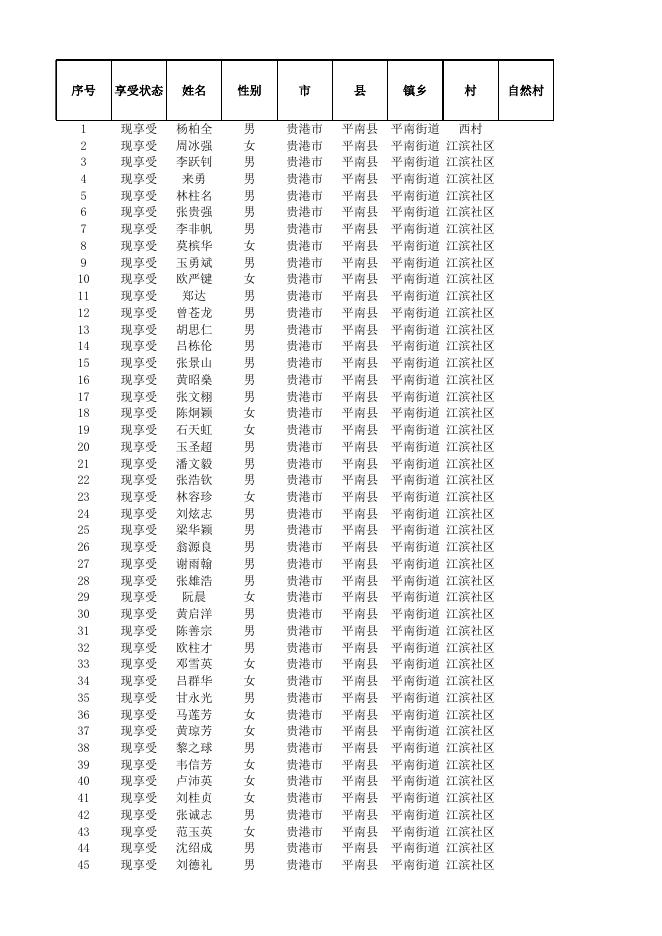 平南县2023年1月份重度残疾人护理补贴发放花名册.xlsx