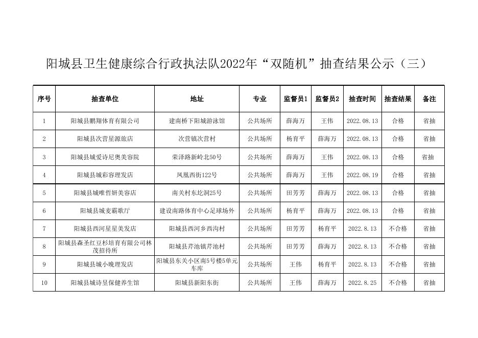 (三)阳城县卫生健康综合行政执法队2022年 “双随机”抽查结果公示.xlsx