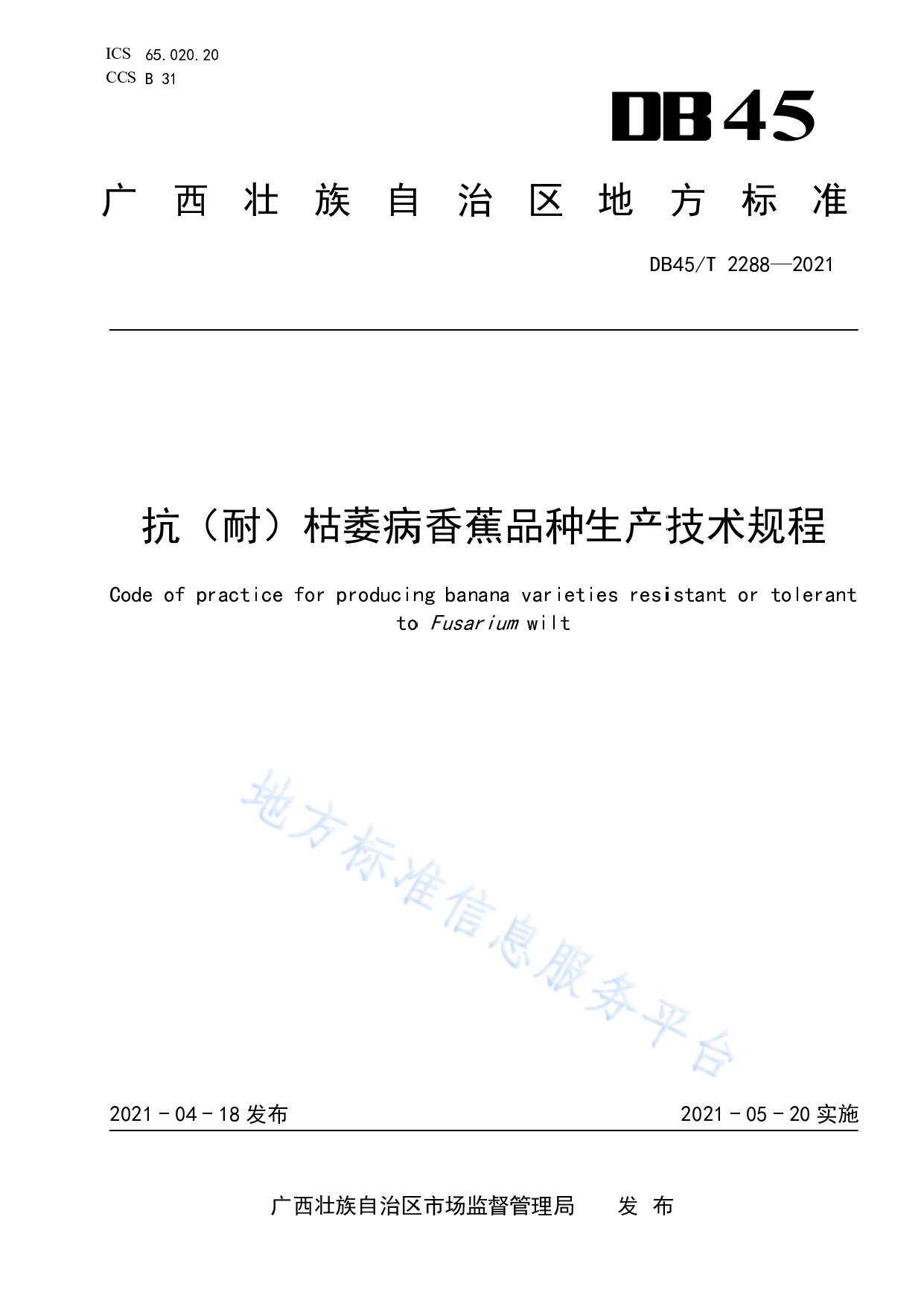 抗(耐)枯萎病香蕉品种生产技术规程