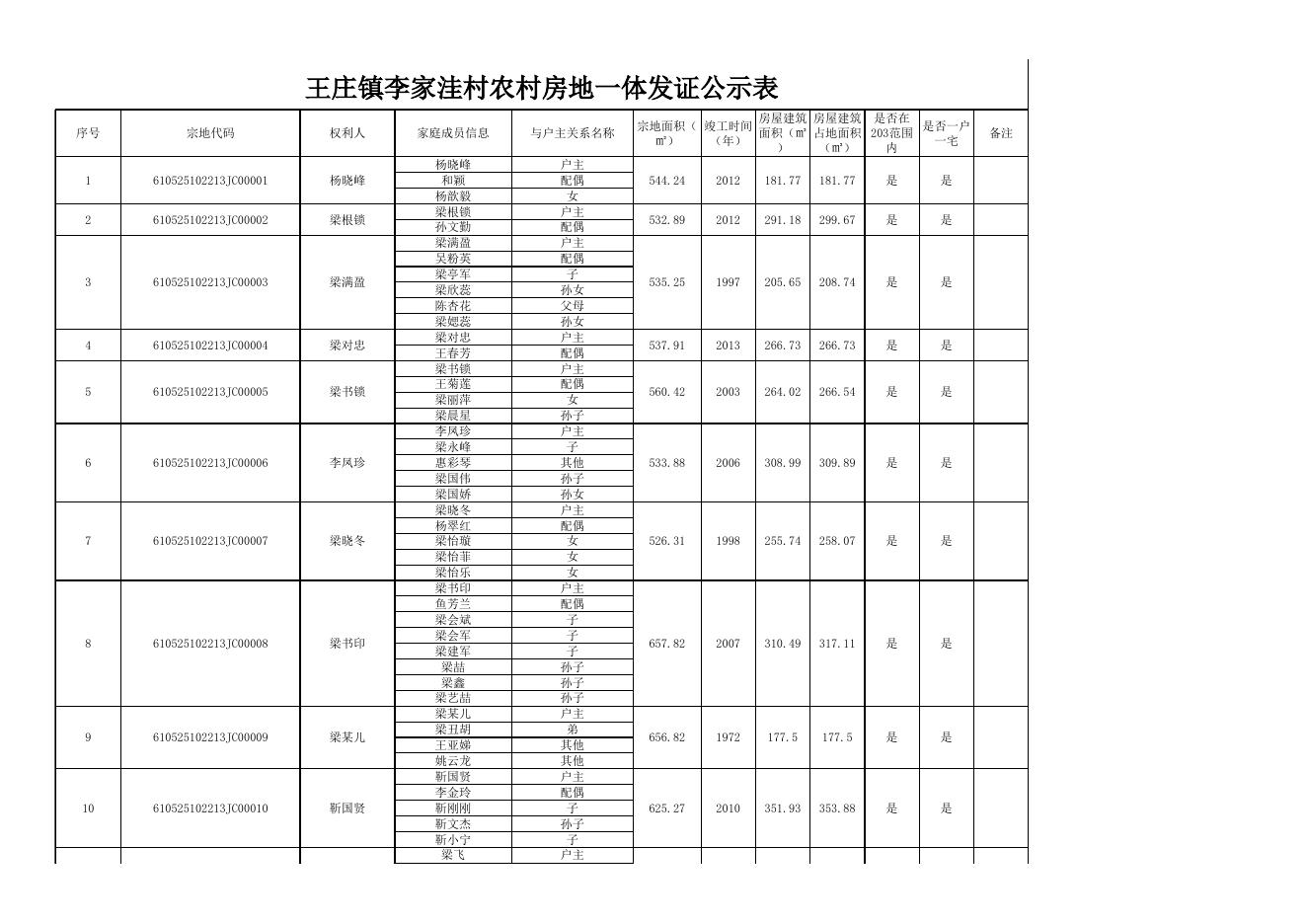 李家洼村宅基地和房屋首次登记明细表.xls