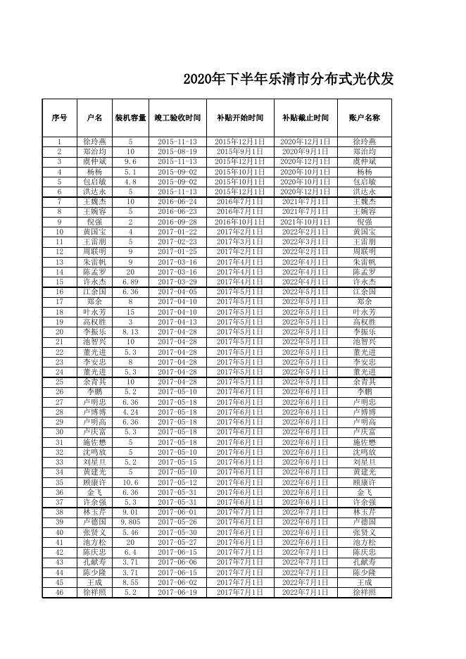 乐发改〔2021〕20号附件:2020年7-12月光伏补贴(发文版).xls