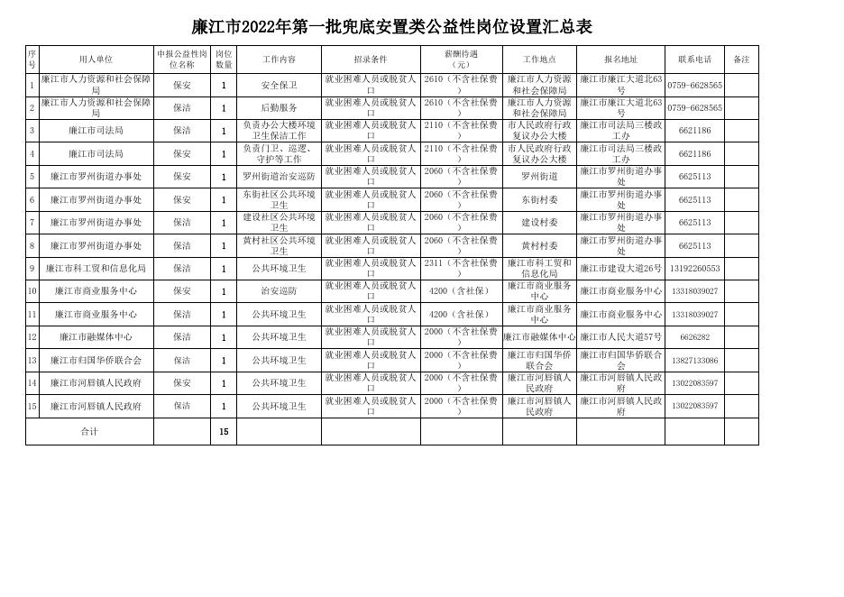 廉江市2022年第一批兜底安置类公益性岗位设置汇总表.xls
