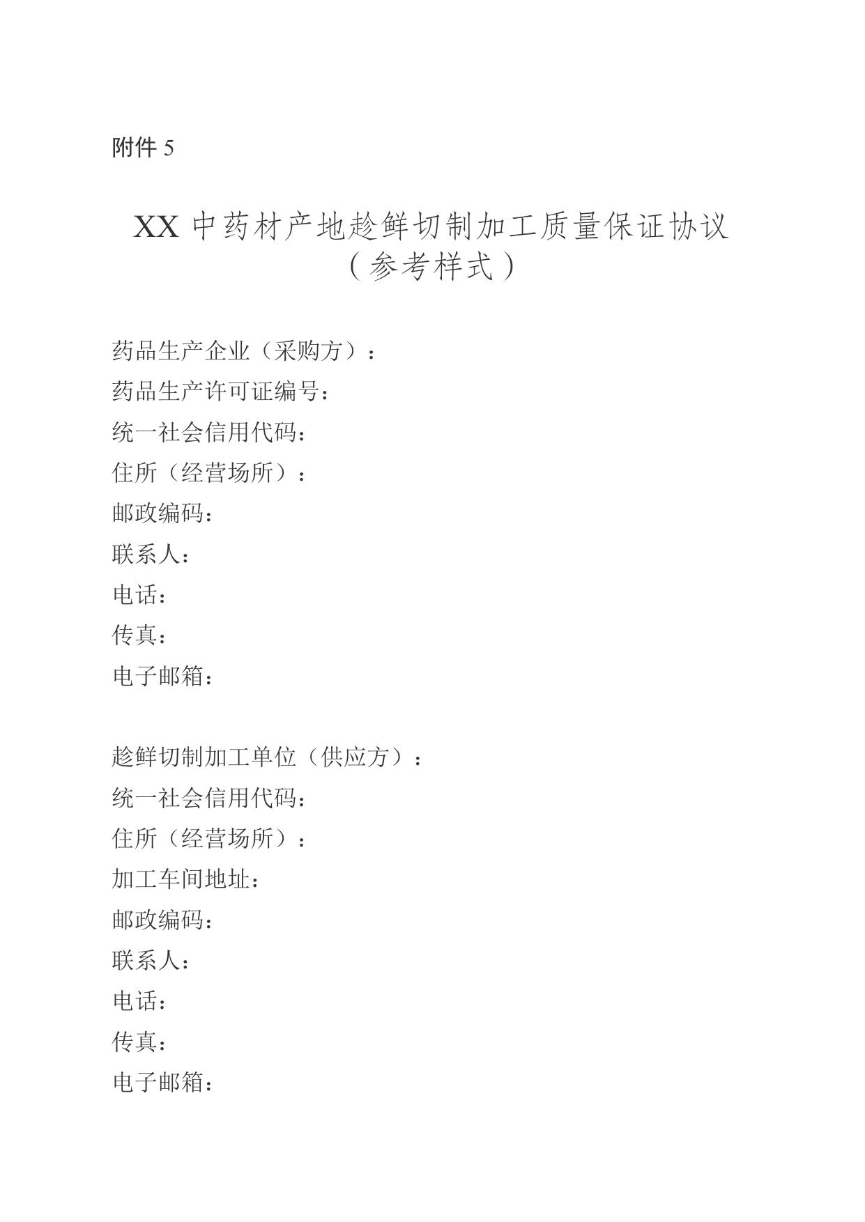 湘药监发〔2022〕13号 附件5 中药材产地趁鲜切制加工质量保证协议参考样式.doc