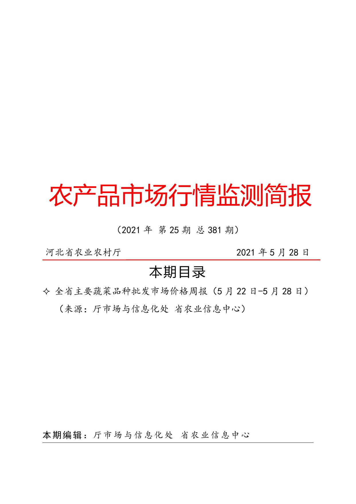 农产品市场行情监测简报--全省主要蔬菜品种批发市场价格周报(5月22日-5月28日).pdf