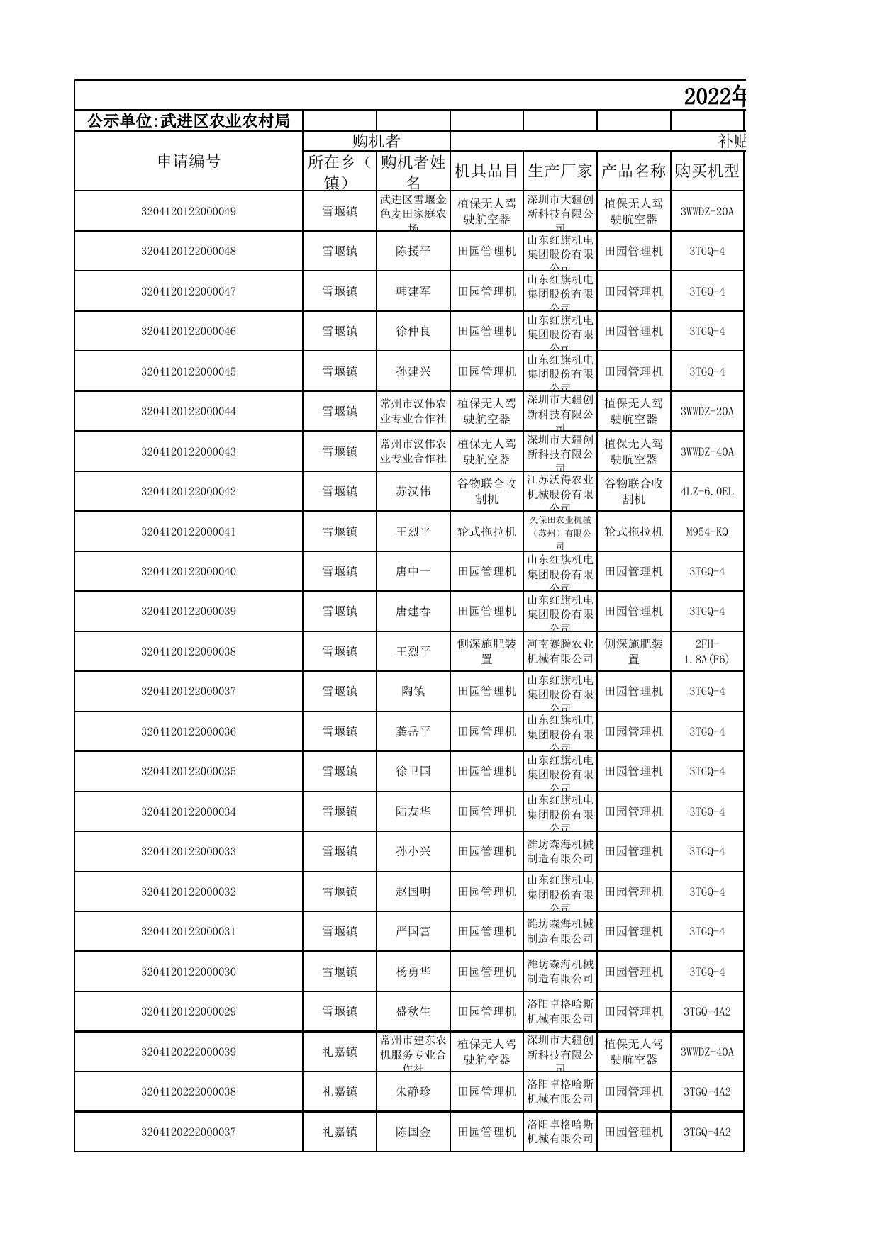 2022年度武进区享受农机购置与应用补贴购机者信息表(第三批).xlsx