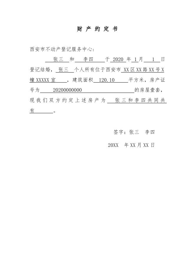 夫妻约定(婚前财产婚内加名样表).doc