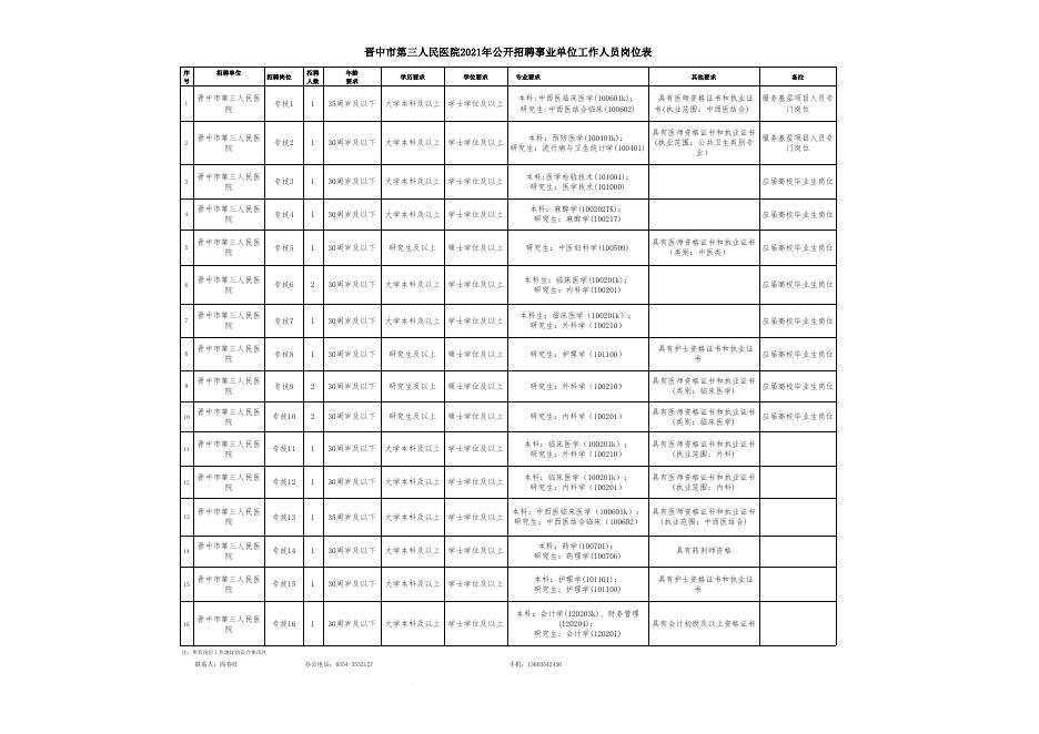 附件1:晋中市第三人民医院2021年事业单位公开招聘工作人员岗位表.xls