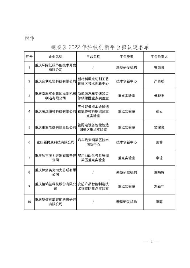 附件-铜梁区2022年科技创新平台拟认定名单.doc