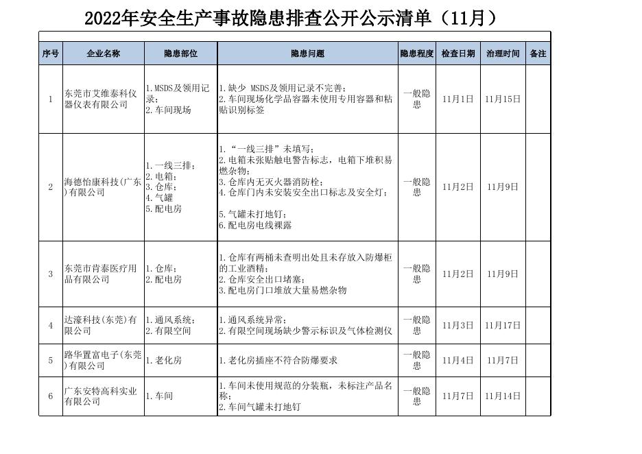 2022年安全生产事故隐患排查公开公示清单(11月).xlsx