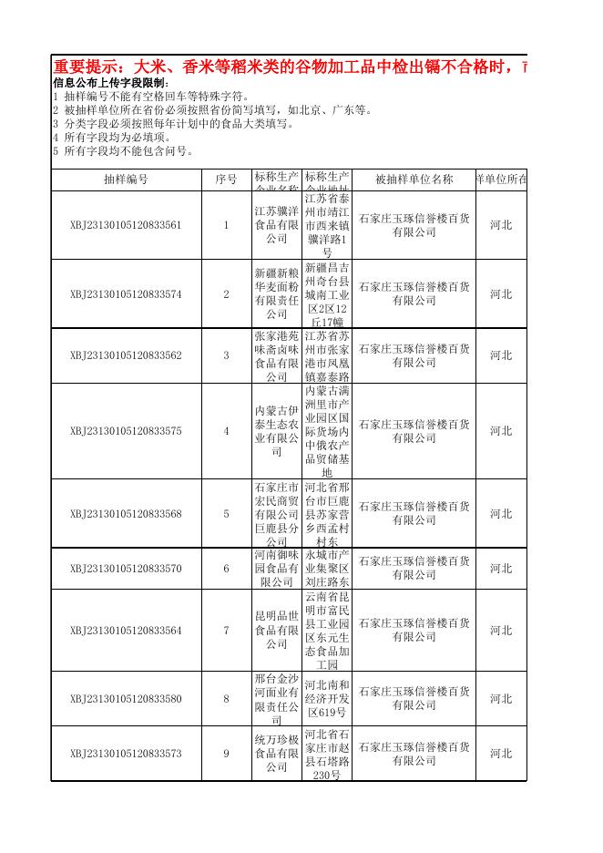 新华区市场监督管理局流通环节33批次合格公示表.xlsx