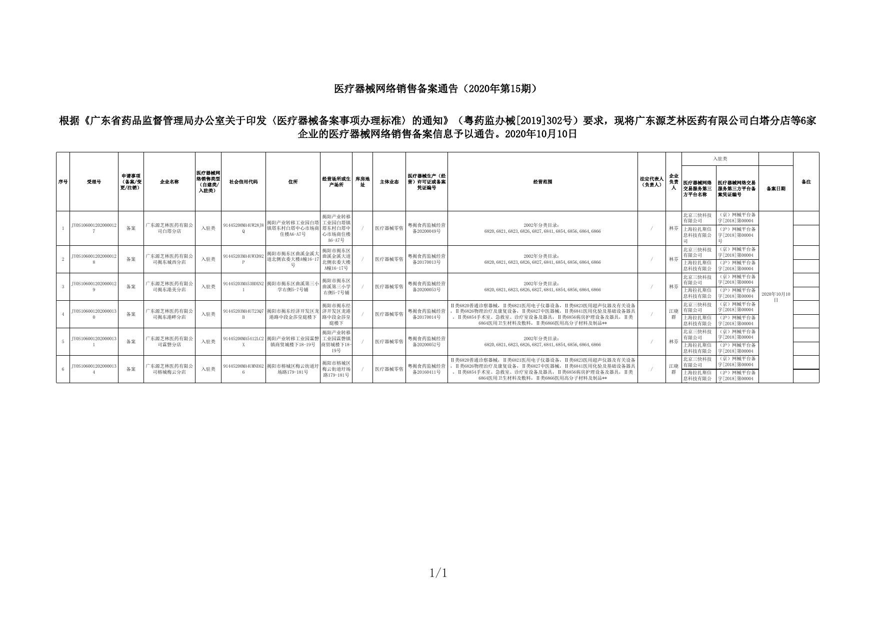 医疗器械网络销售备案通告(2020年第15期).xls