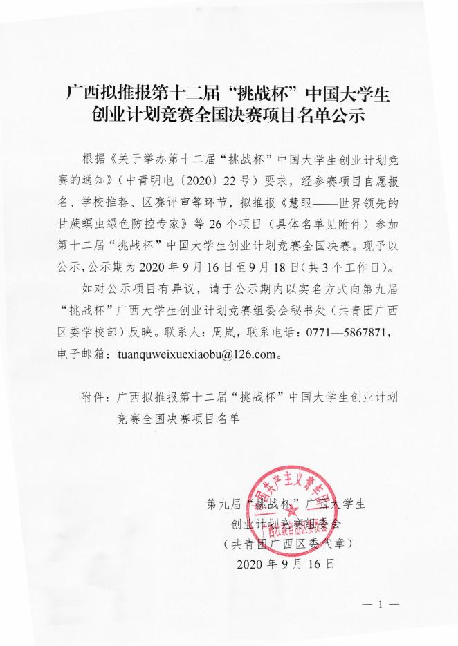 广西拟推报第十二届“挑战杯”中国大学生创业计划竞赛全国决赛项目名单.pdf
