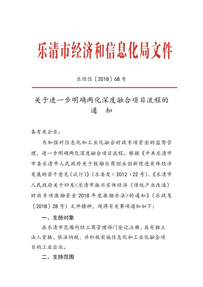 乐经信〔2018〕68号关于进一步明确两化深度融合项目流程的通知.doc