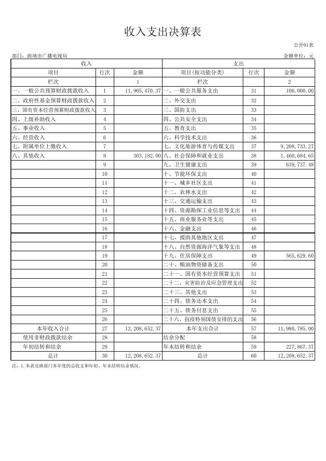 1、曲靖市广播电视局2021年度部门决算公开表.xls
