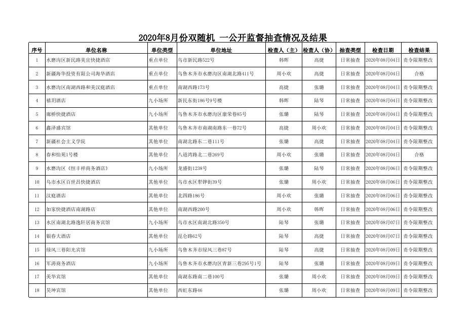 2020年8月份双随机 一公开监督抽查情况及结果.xlsx