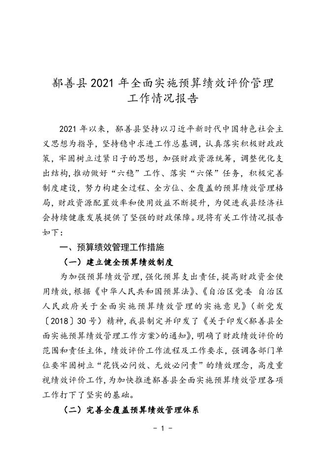 12、鄯善县2021年预算绩效评价管理工作情况汇报.doc