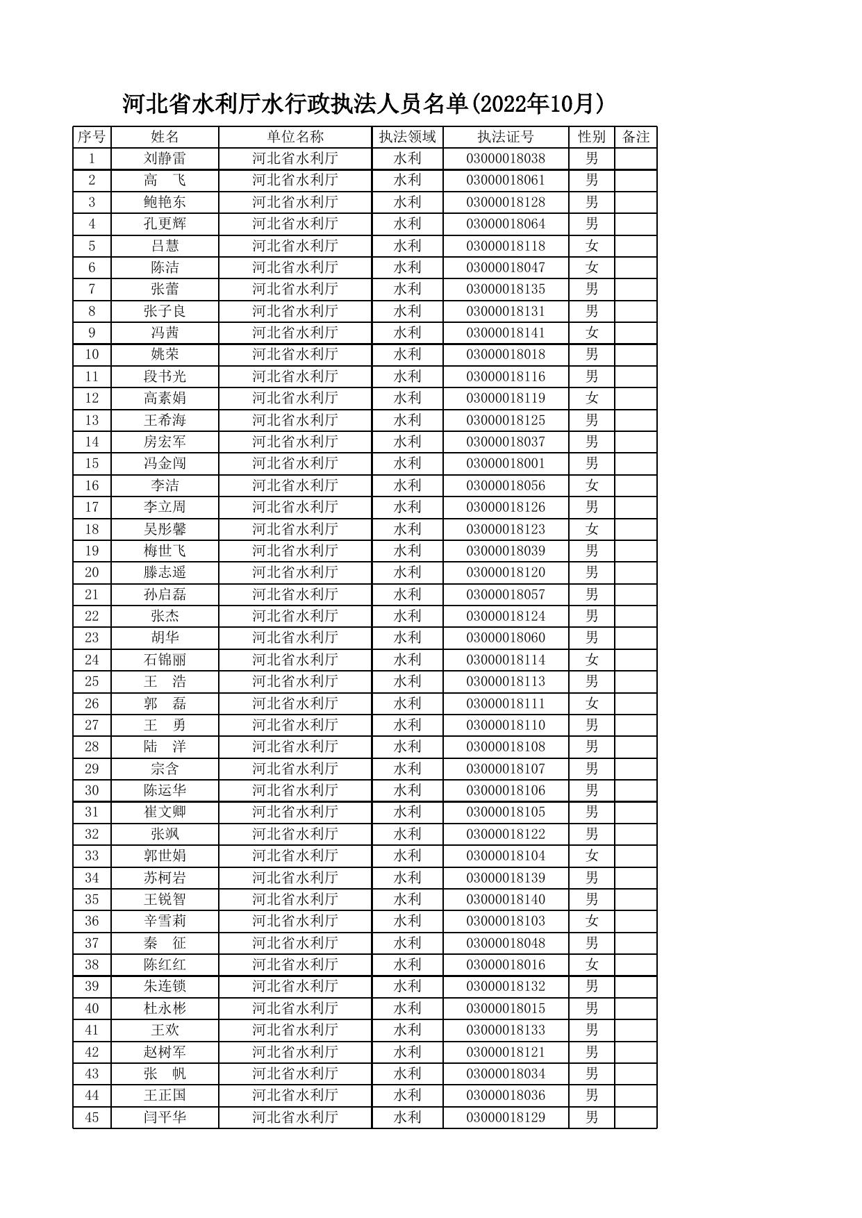 河北省水利厅水行政执法人员公示2022.10.13.xlsx