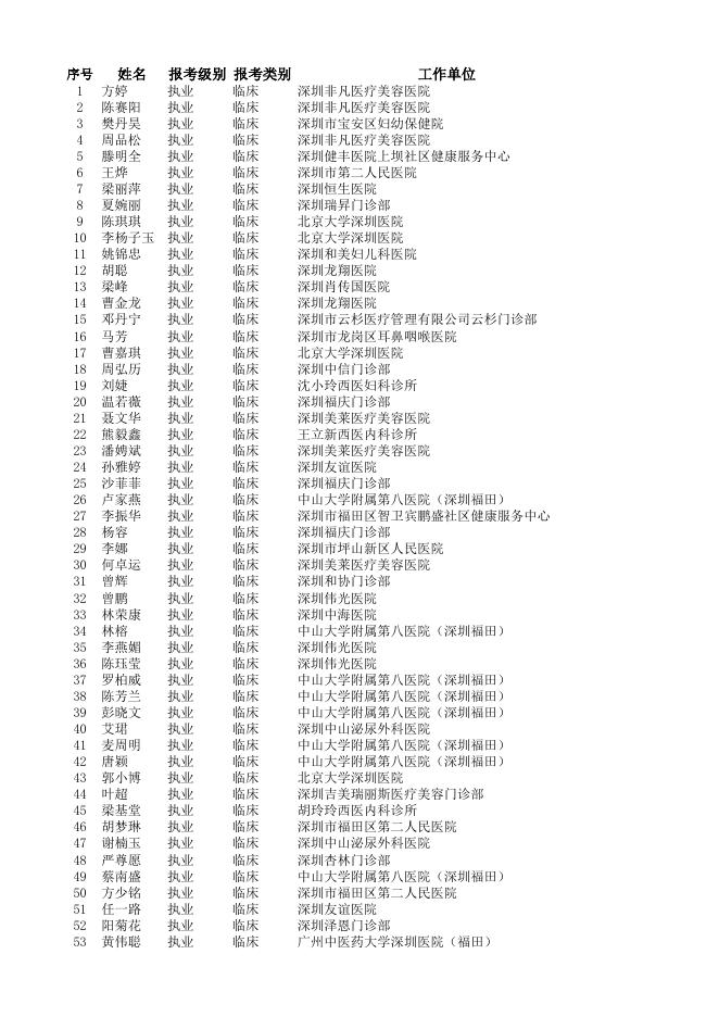 深圳考点2018年国家医师资格考试报名资格审核合格人员(3155名考生)公示名单.xlsx