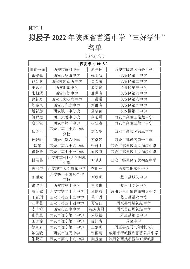拟授予2022年陕西省普通中学“三好学生”名单.docx