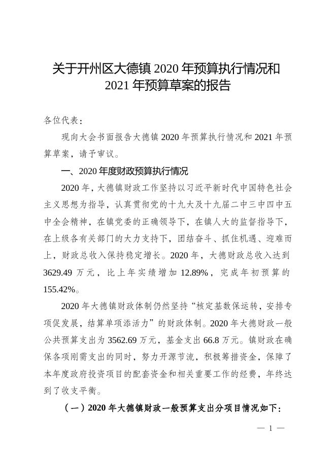 大德镇2020年预算执行情况和2021年预算草案的报告.doc