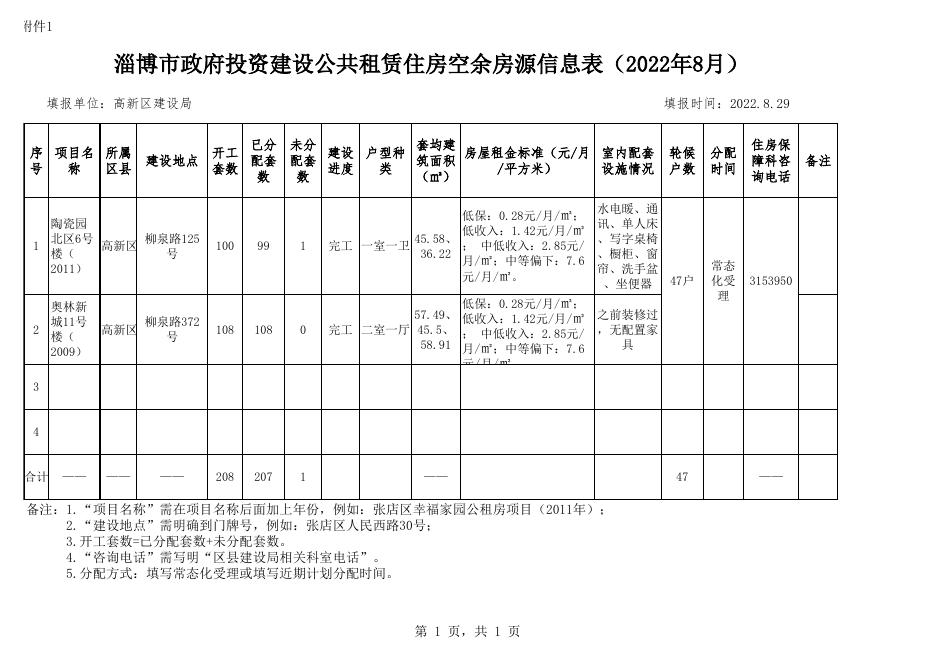 保障性住房空余房源信息表(高新区2022年8月).xls