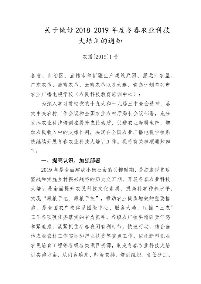 附件:中央农广校关于做好2018-2019年度冬春农业科技大培训的通知.docx