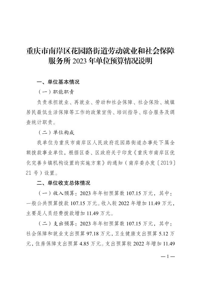 重庆市南岸区花园路街道劳动就业和社会保障服务所 2023 年单位预算情况说明.pdf