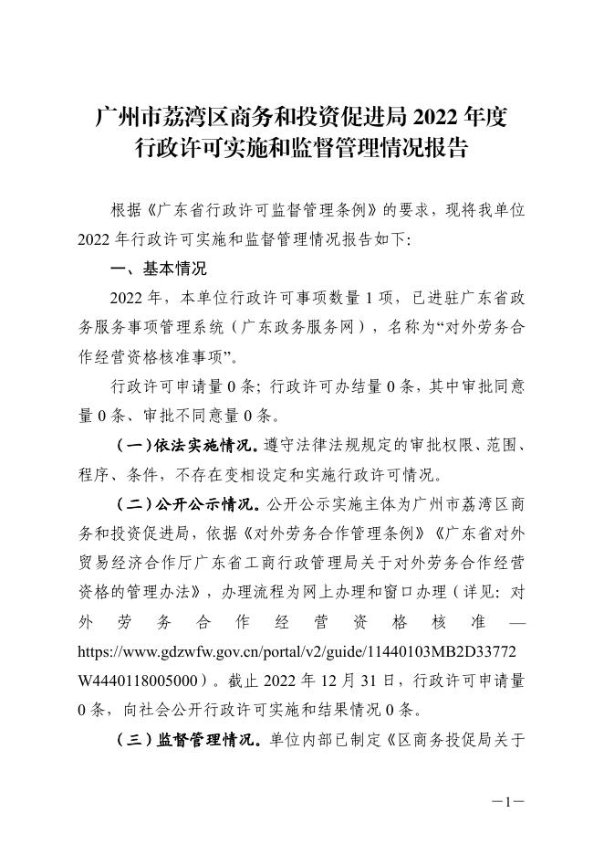 广州市荔湾区商务和投资促进局2022年度行政许可实施和监督管理情况报告.pdf