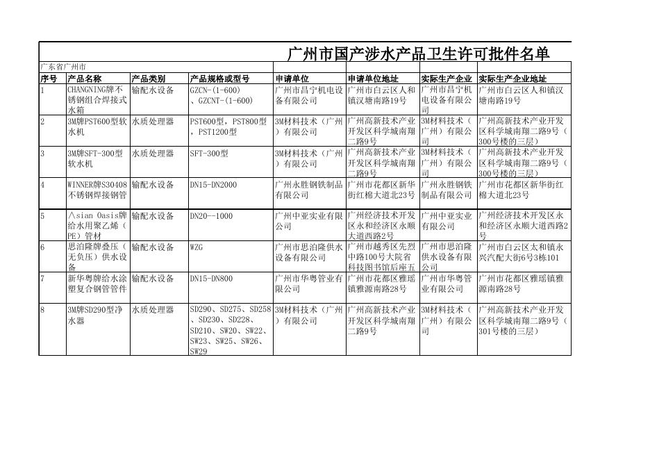 广州市涉水产品卫生许可批件名单(更新至2022.5.31).xls