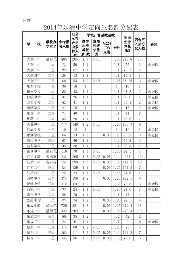 附件下载:18号附件:2014年乐清中学定向指标分配表.xls