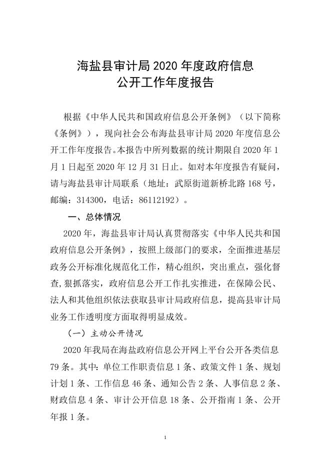 海盐县审计局2020年度政府信息公开工作年度报告.doc