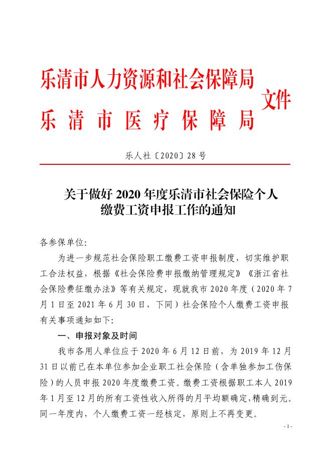 乐人社〔2020〕28号乐清市人力社保局_乐清市医保局关于申报2020年度乐清市社会保险职工缴费工资的通知(2).pdf